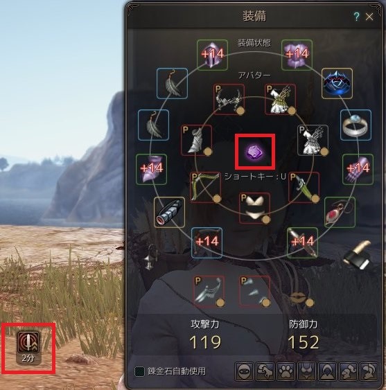 錬金石は、専用のスロットに装着し使用することで、バフの効果が適用されるアイテム。