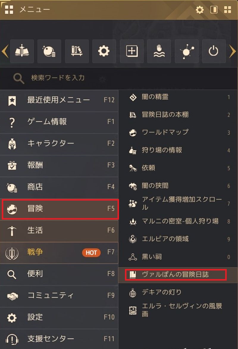 朝の国とエダニアの冒険日誌の表示場所が変わって、専用UIから確認できるようになったと、前のメンテで知ったけど「それはどこにある?」ってなってました。