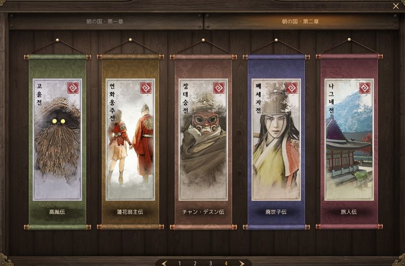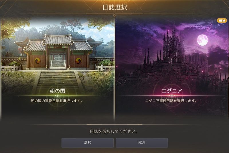 出てきたUIの「朝の国」か「エダニア」を選択すると、それぞれの物語が表示されます。