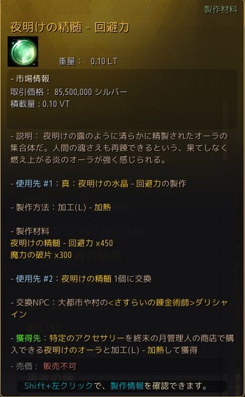 真:夜明けの水晶の製作にも使えますが、今回は「夜明けの精髄」にしたいでの、ダリシャインのところで交換してもらいます。