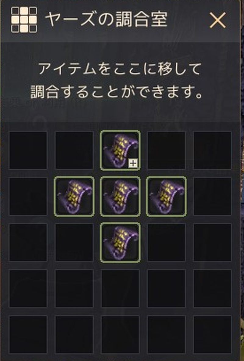 古語で記録された巻物は、重ねて所持できるようになっているので「ヤーズの調合室」で調合。