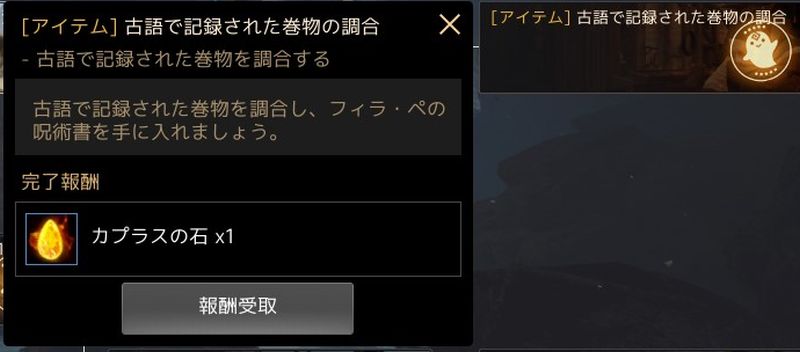 行ってきたのは「古語で記録された巻物を調合」というもの。
