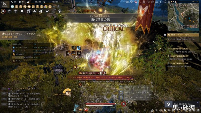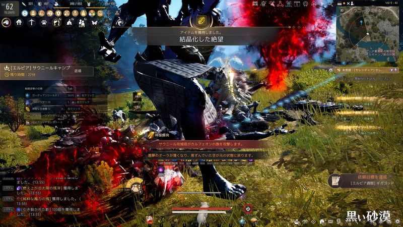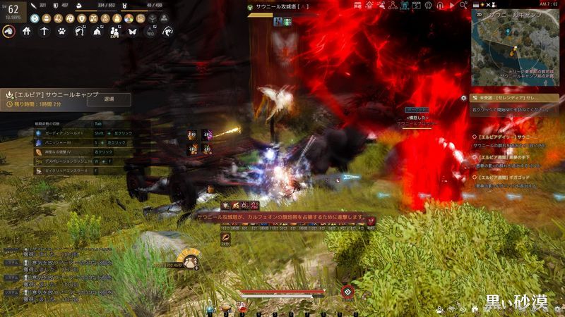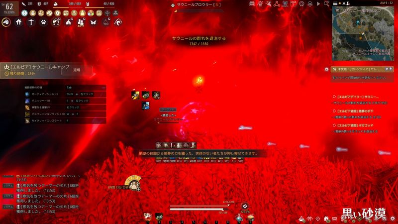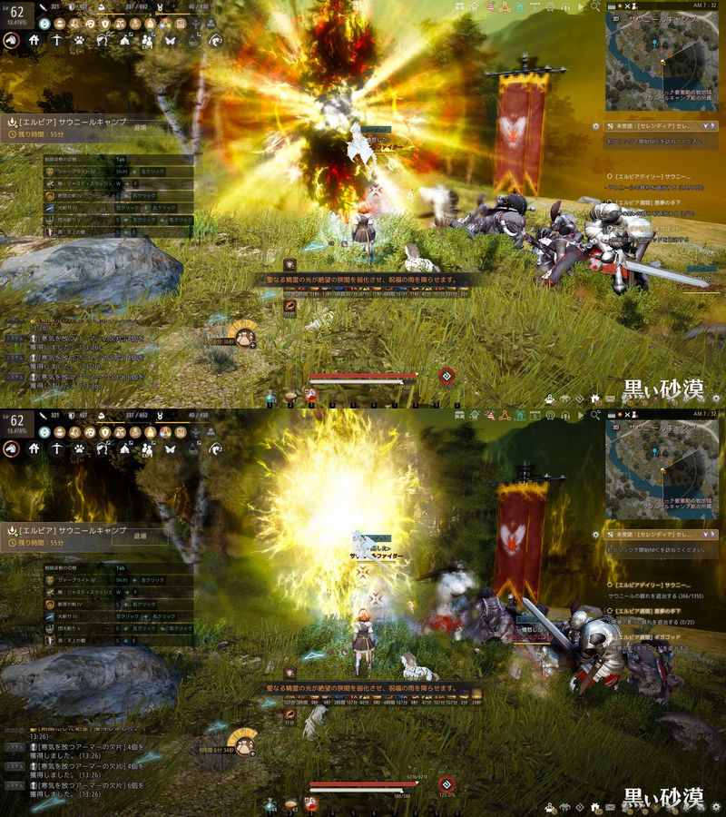 この2つの依頼を達成しようと、エルビアカルフェオンのサウニールキャンプで狩りします。