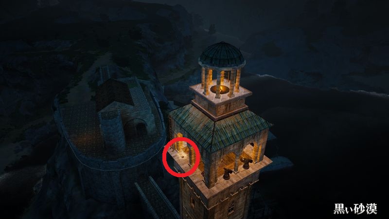 少しわかりにくいですが、一番下?から見上げた時に見える小屋の横です。