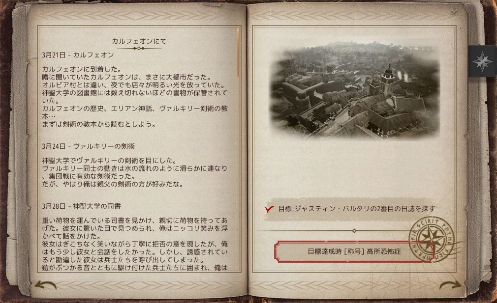 エフェリアに隠された「ジャスティン・バルタリの冒険日誌」は、展望台に行ってみるといいというヒントから、間違いなくあれだなと。