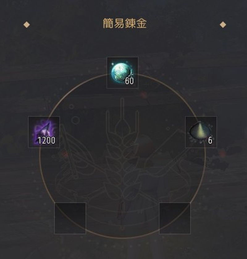 また、「微弱な蒼穹の精髄」と「先の尖った黒結晶の欠片」に「ブラックストーン粉末」を1個足して簡易錬金すると、10個ずつ作れるので時短できます。