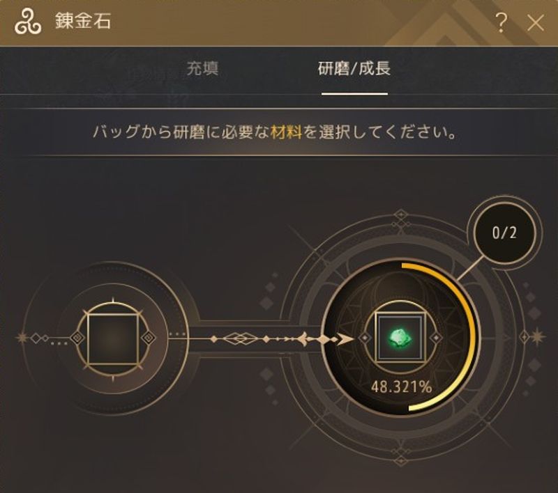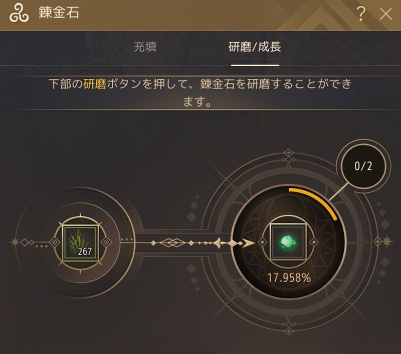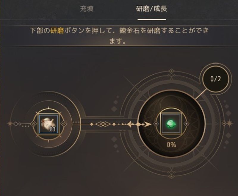 錬金石のシステムリニューアル後、初めての生命の錬金石研磨です。