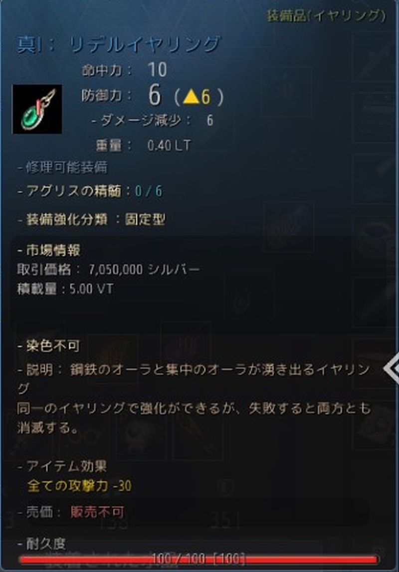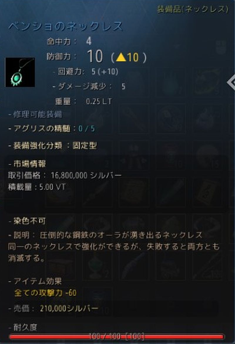 防御力のあるアクセサリーに、攻撃力マイナス効果が付きました。