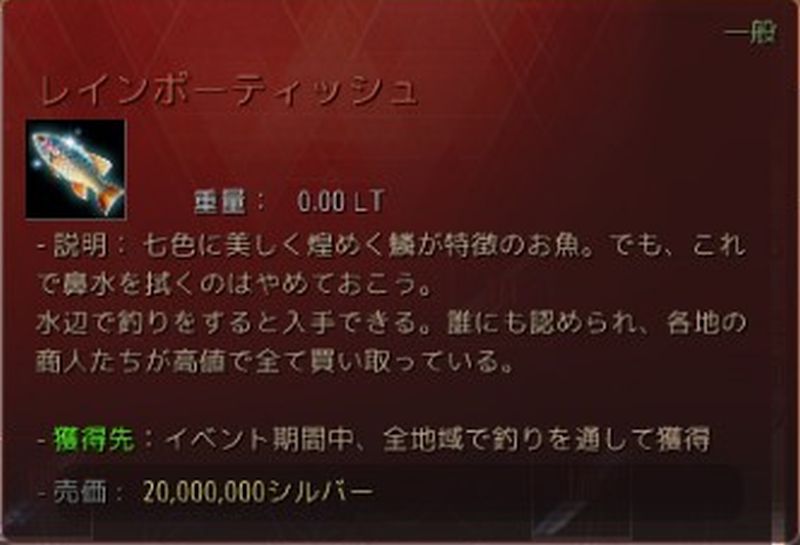 - レインボーティッシュ:2,000万シルバー