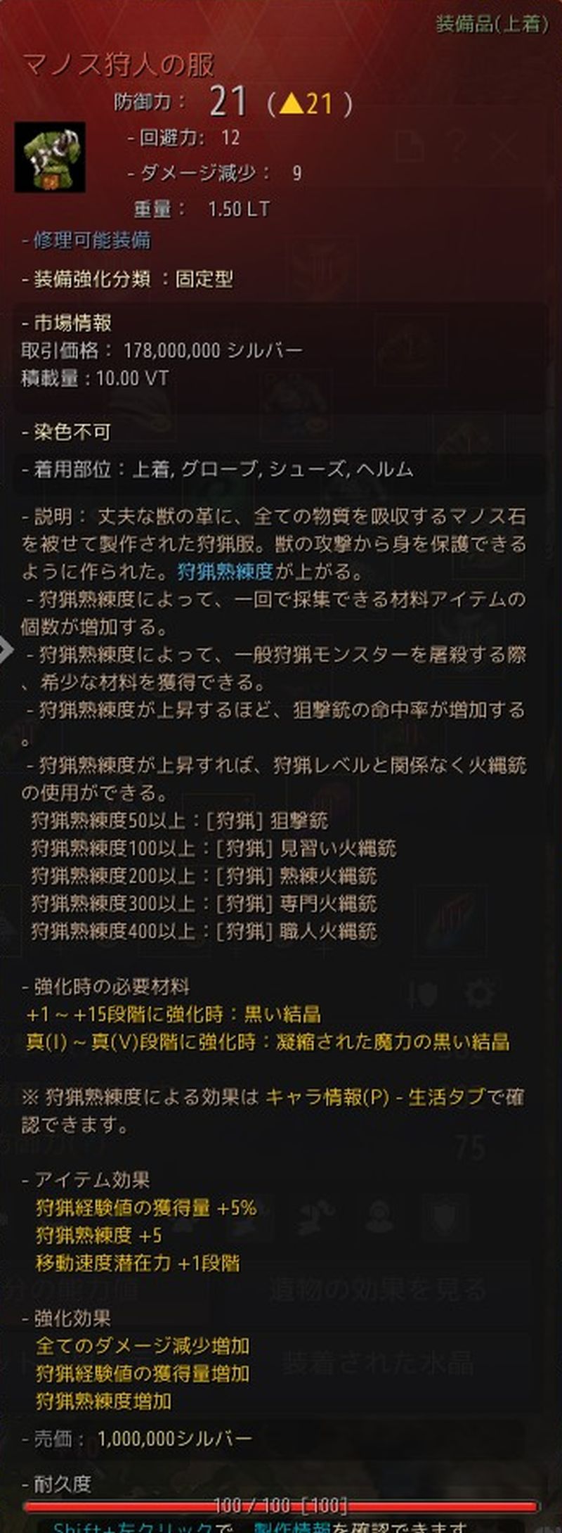 このままだと、オルビア・アカデミーの狩猟授業でもらった狩人の服より性能が落ちるし、珍しい狩猟図鑑を埋めたいので強化しました。