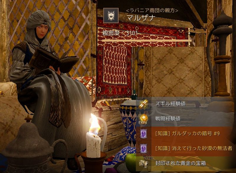 ガルダッカの遺物をマルザナに渡すと、上記の報酬をもらえます。