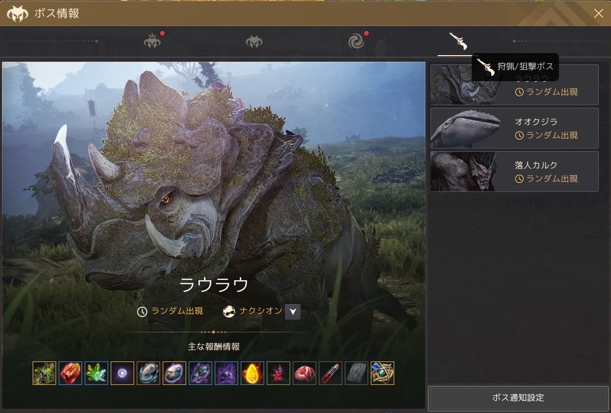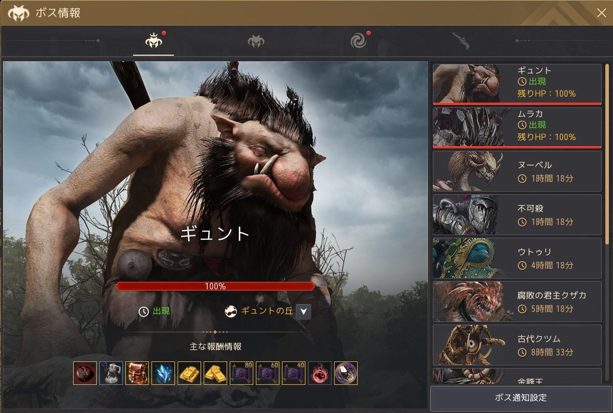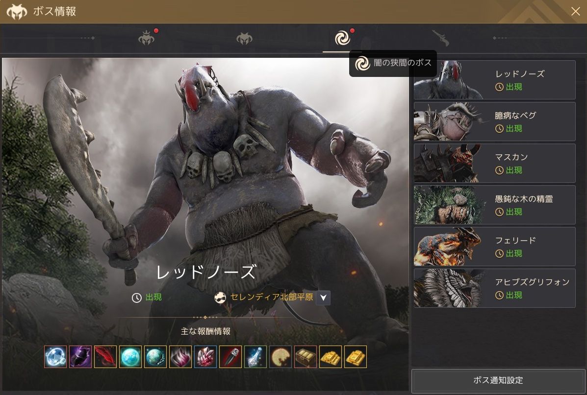 ワールドボス、フィールドボス、闇の狭間ボス、狩猟ボスの4種類が一つのUIで確認できるようになって、個人的にはかなり便利になったと感じました。
