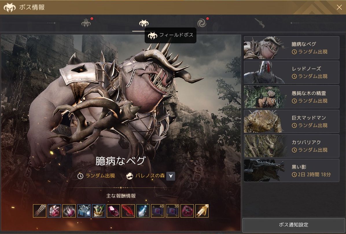 ボス通知設定は、確かワールドボスだけだったはずなので、このあたりも助かるのでは?