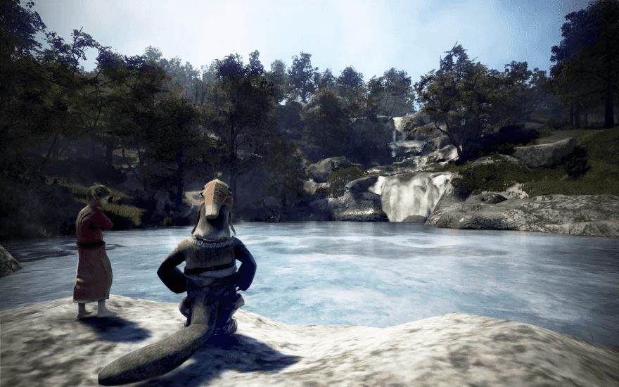 穏やかな泉に居るクリオからアイテム獲得